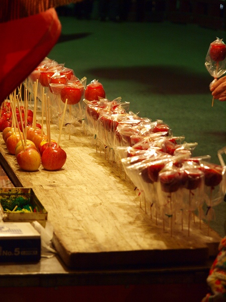 リンゴ飴です。大きさ違い?で 200円と 300円がありました。