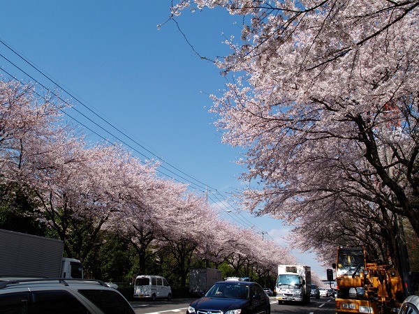 しばらく行くと道路脇に桜の咲いた公園がありました。